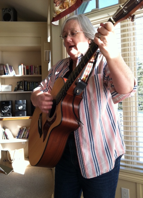 Peer Leadership Instructor Alice Kinahan adds some musical inspiration to the Peer Leadership Weekend in January 2014.